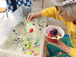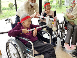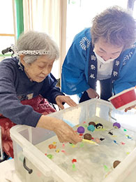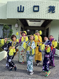 厳しい暑さが続き、動くのも億劫に感じるこの頃ですが、山口苑では涼しい 苑内で納涼祭を行いました。 和太鼓の音に心躍り、童心に戻って輪投げや金魚すくいに挑戦され、和気あい あいとした時間を過ごし、夏の風物詩を楽しまれていました。