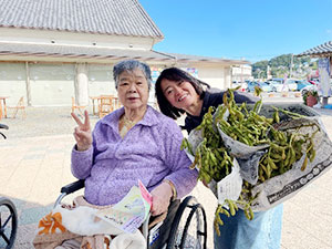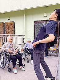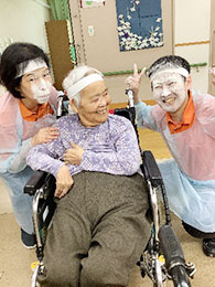 入所者さんの普段見られない笑顔を見て、職員もほっこり。子どもにはかないませんね。
