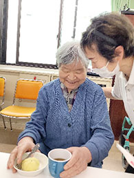 1月12日は新年会を行いました。皆さんで「一月一日」を歌ったり、ボランティアの方には大正琴の演奏をして頂き、心が安らぐようなメロディーでした。 お茶菓子で出た紅白の花形羊羹は、ご利用者に大絶賛!美味しいと皆さん喜んでおられました。
