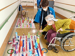 利用者と協力して行う競技は楽しそうで皆さん満足していました。また来月も皆さんで楽しみましょう。