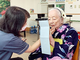 認知症予防教室では職員の講義や認知症自己チェック、また有馬病院の専門職の協力をいただきタクティール体験を行いました。