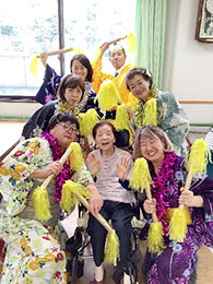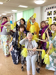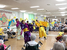 ご利用者も大喜び、とっても盛り上がりました!この日のために練習を重ねた「南中ソーラン節」の踊りが始まると、ご利用者の中には一緒に踊り出す場面も!ご利用者、職員ともに笑顔あふれるひと時となりました。