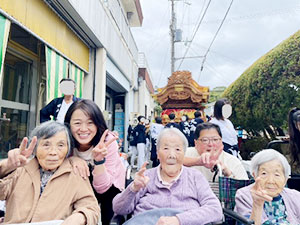 元気な掛け声と共に迫力あるだんじりが目の前を通ると、利用者の皆さんも思わず拍手されていました。