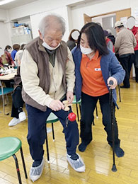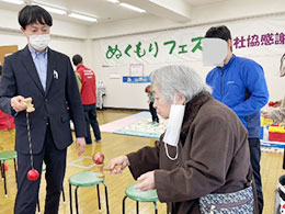 今日は、北六甲台地区社協が主催する「ぬくもりフェスタ」に参加しました。ふれあい喫茶で美味しいコーヒーをいただきながら地域の方々と交流し、けん玉コーナーでは、講師の方が「世界一周」などの難しい技を披露されると拍手で盛り上がり、地域のお子様たちと一緒に利用者さんや職員も童心に帰ってけん玉に挑戦され、「久しぶりにすると難しいなぁ~」と楽しまれていました。