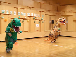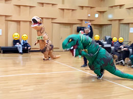 山口苑の行事にも度々登場する2頭の恐竜さんですが、今回は西宮市山口ホールで開催されたジュラシックレースに参戦しました!