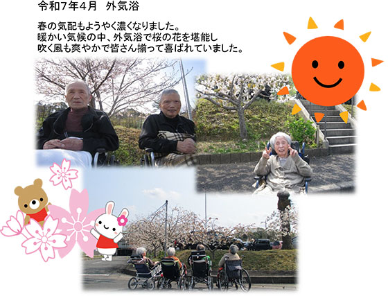 毎年見られる桜を楽しみにされている方も多く、皆さん、満開の桜を見ながらのんびり外気浴をおこない楽しまれていました。