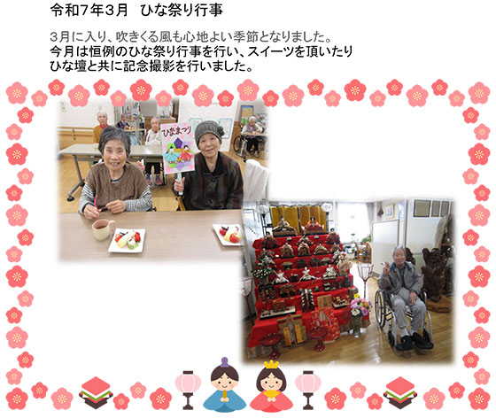 3月はひな祭りという事でちらし寿司やひな祭りケーキを食べられました。