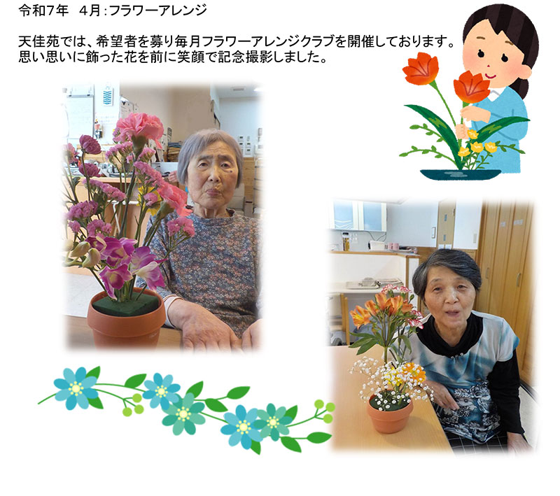 毎月おこなっている活動として「フラワーアレンジメント」があります。