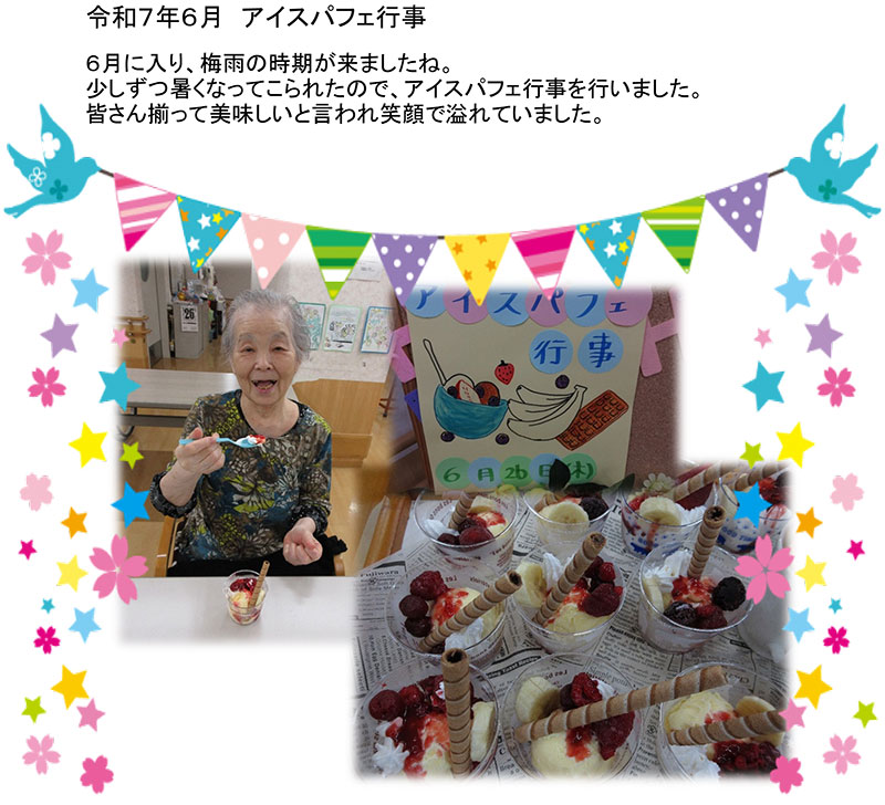 みんなで短冊を書いたり、パフェを食べたりと大いに盛り上がり揃って楽しまれていました。
