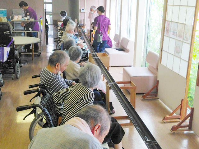 8月:夏の風物詩「流しそうめん」をおこないました。