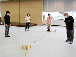 今年度最初の就活支援交流会は、フィンランド発祥のスポーツ、モルックを通して交流を図りました 。