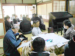畠さん(写真左)を囲んで足指のストレッチ![]() |