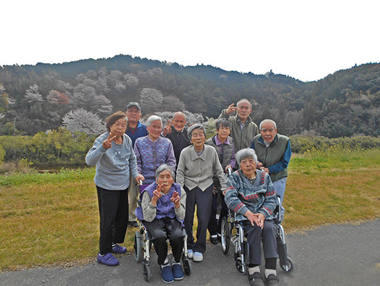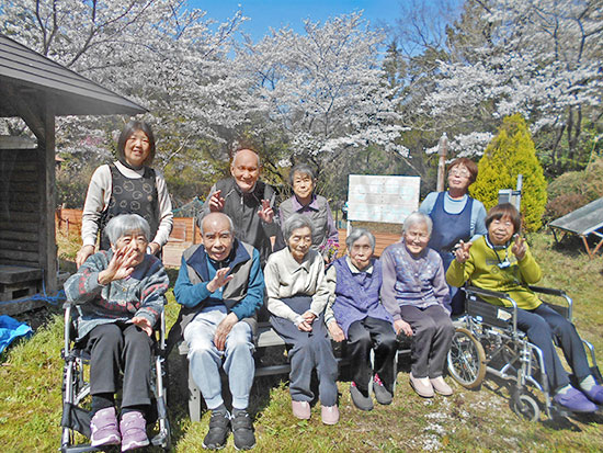 ぬくもりの庭。近くの河川敷へドライブ。満開の桜に皆様喜ばれていました。