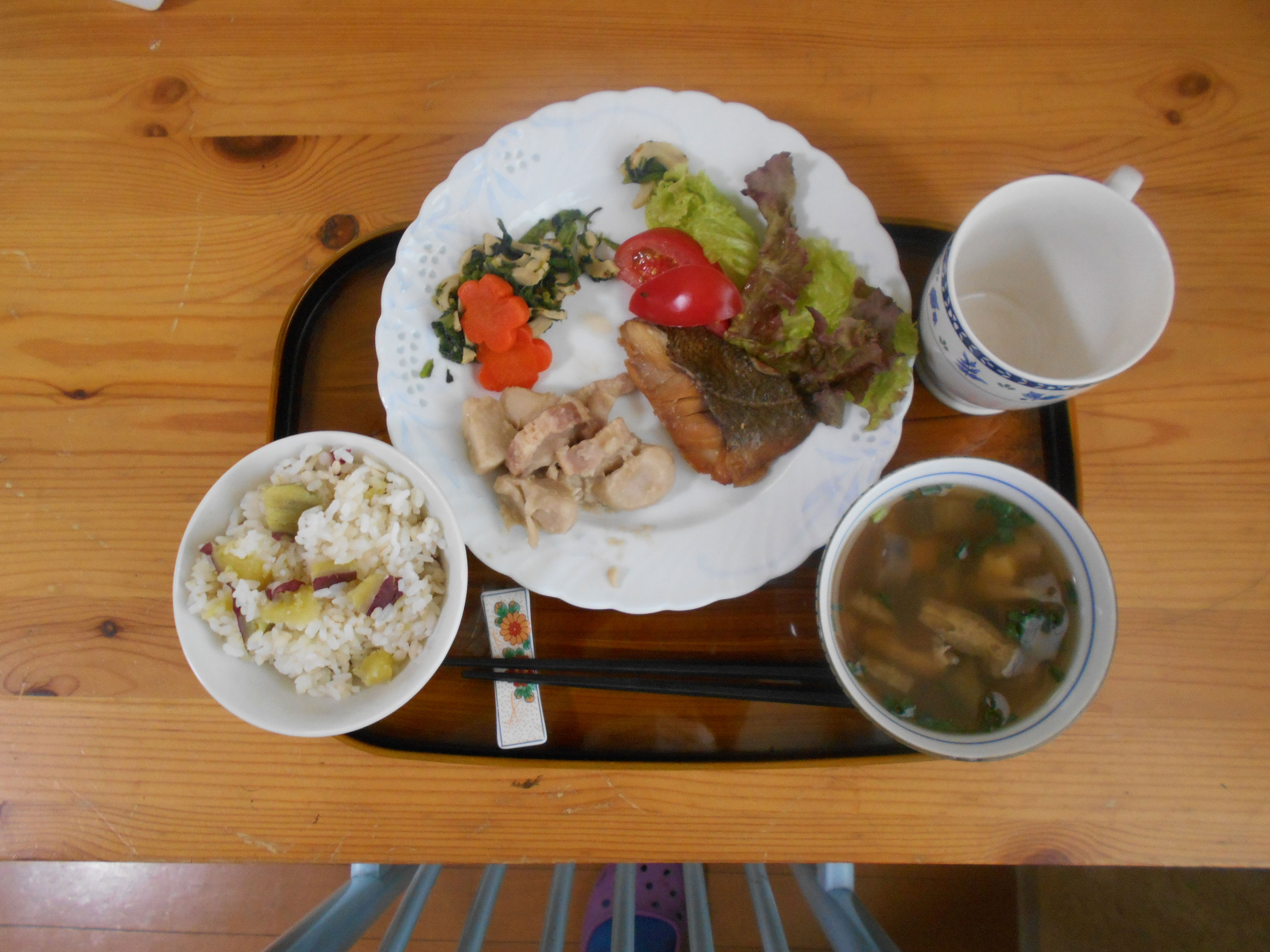 秋の味覚、栗ご飯を昼食で食べました。皆様大変喜ばれました。