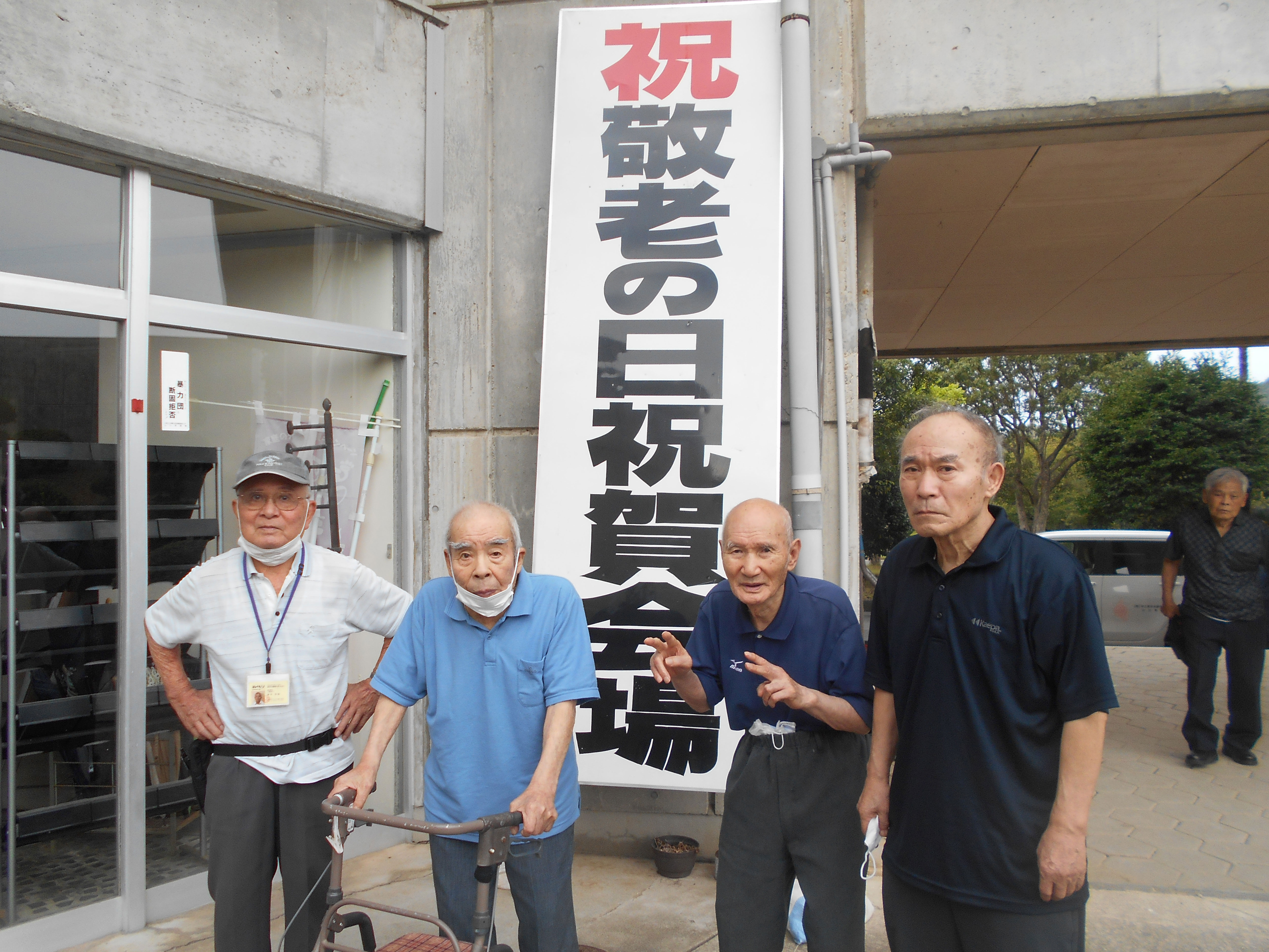 ご利用者の男性陣。ぬくもりの紅葉のもみじ前で2ショットです。
