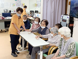 - 日中、施設やデイサービスセンターに通っていただき、日常生活上のお世話や機能訓練を行うサービスです。