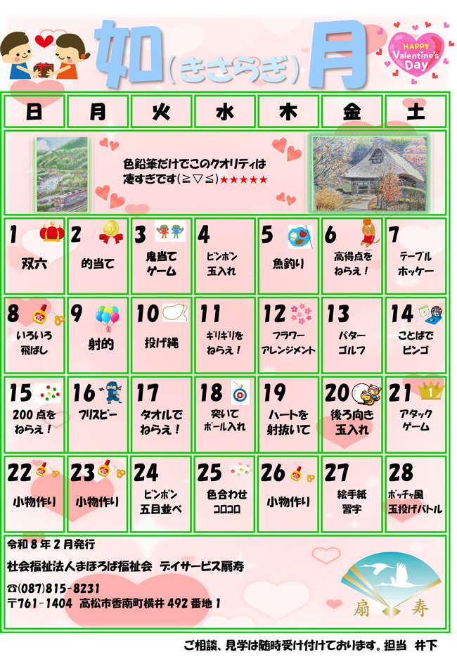 レクリエーションや趣味活動、どなたにも参加できるゲームやクイズなどで盛り上がったり、ボランティアの方々による各種慰問、四季折々の行事を楽しみながら心身の活性化健康維持が図られ、馴染みの方が増えますよ!