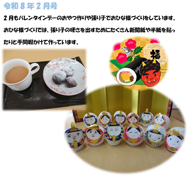 季節に合った作品作りも行い、出来た作品は自宅に持ち帰って頂いています。