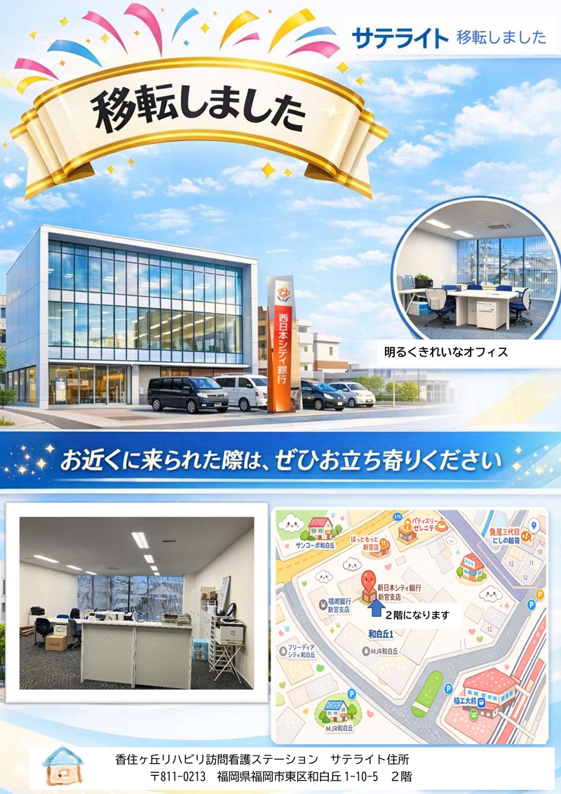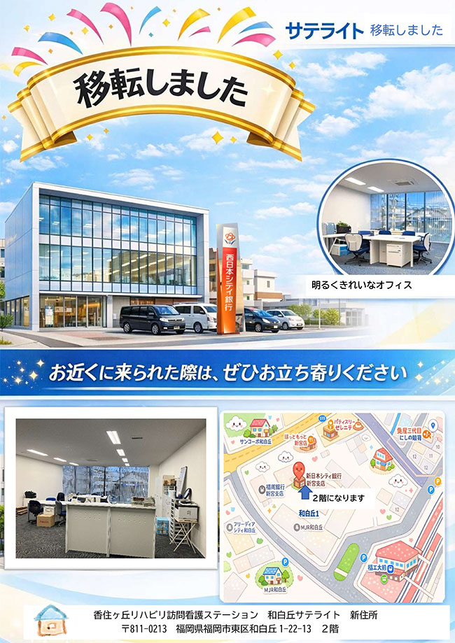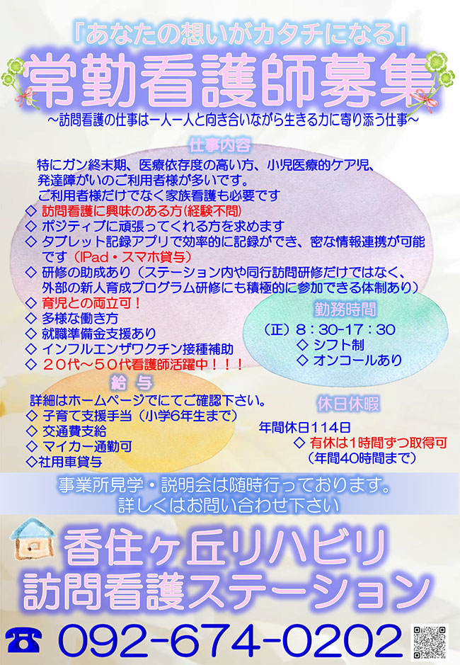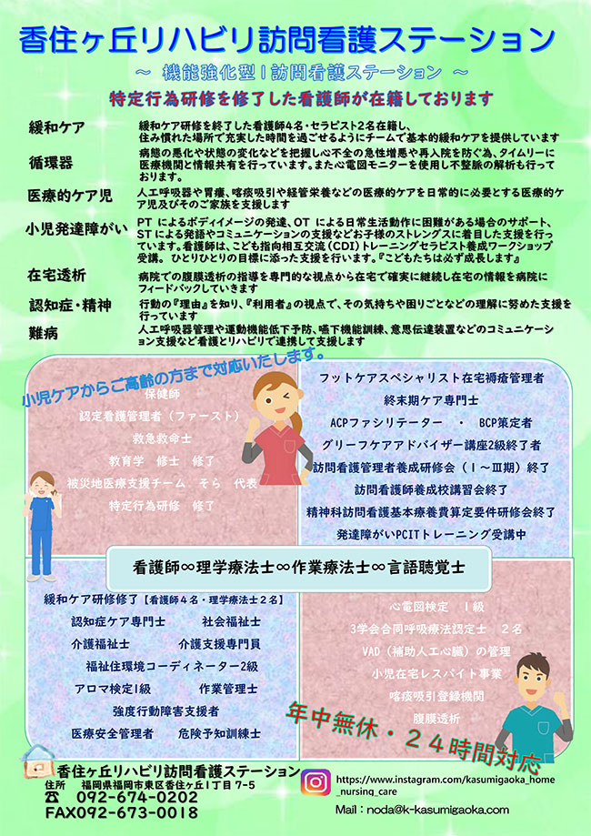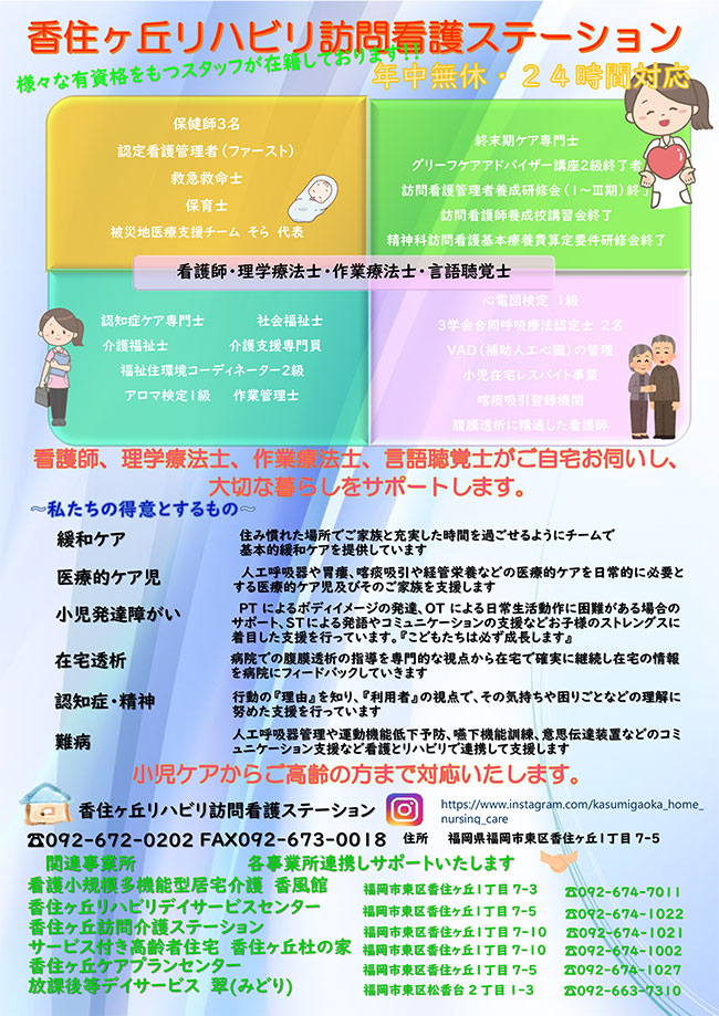 - 香住ヶ丘リハビリ訪問看護ステーションの新しいチラシを作成しました。