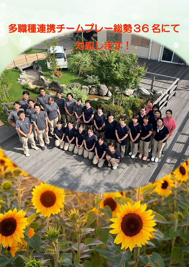 当事業所は看護師、理学療法士、作業療法士、言語聴覚士と連携し「自己決定支援」「自立支援」「地域や自宅での生活の継続」をチームで支え、地域に密着した訪問看護ステーションを目指しています。専門看護師、認定看護師は在籍していませんが、ジェネラリストであるために、日々研鑚を積んでいます。可能な限り基礎疾患の全身管理を行い、リハビリを施行しています。また、より効果的、効率的なケアを考え、非医療者である看護補助者と同行することで幅広い対応も可能です。大規模訪問看護ステーションですが、丁寧な対応を心がけています。