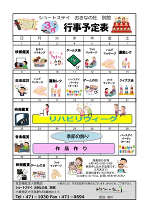 | 3月 | ひなまつり | 9月 | 敬老式典/お月見会 |