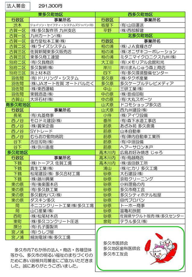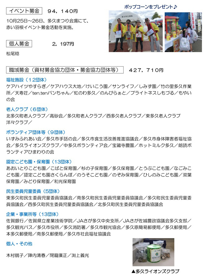 お寄せいただいた募金は、多久市内の地域福祉の充実のためだけでなく、大規模災害時のボランティア活動の支援にも活用させていただきます。
