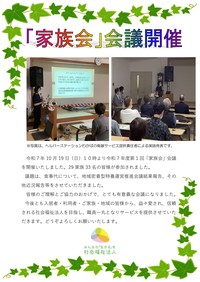 令和7年10月19日(日)10時より令和7年度第1回「家族会」会議を開催いたしました。29家族33名の皆様が参加されました。