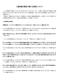 いつも施設をご利用していただき、誠にありがとうございます。また、この度は、施設に対する貴重なご意見をありがとうございます。遅くなりましたが、以下にご意見内容と、それに対する、回答を書いてありますので、ご高覧下さい。