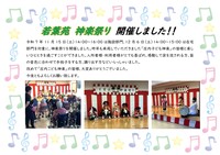 令和7年11月15日(土)14:00〜16:00は施設部門、12月6日(土)14:00〜15:00は在宅部門を対象に、神楽祭りを開催しました。昨年も来苑していただきました「庄内子ども神楽」の皆様と楽しいひとときを過ごすことができました。入所者様・利用者様がとても喜ばれ、感動して涙を流される方、笛の音色に合わせて手拍子をする方、踊り出す方などいらっしゃいました。