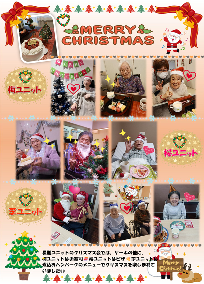 | 居室 | 全室個室(冷暖房、洗面台、トイレ完備)、電動ベッド、体圧分散マットレス、チェスト、テレビ(ショートユニットのみ)、照明スタンド(ショートユニットのみ) |