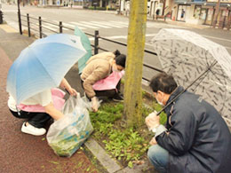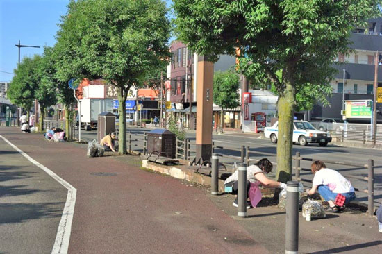 今年度の第1回目の町内清掃は、6月25日(日)の早朝6時30分から。早朝と言えども、やはりこの時期はさすがに暑いです。ピンク色のウィングのエプロンをした私たちのお掃除担当エリアは、いつのまにか長町駅前の歩道ということになっていて、歩道脇に生えている雑草を抜いたり、タバコの吸殻を拾い集めたり、30分も作業をすると全身汗だくになるほどです。