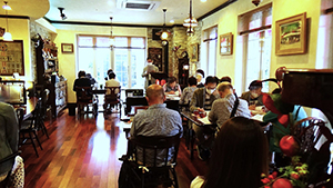 終了後は、時間の許す限り、おしゃべりcafeタイム。来年開設される「浪漫座」の話や皆さんが興味をもたれている話と、あちらこちらで会話がはずんでいるようで、終始笑顔が溢れた、なごやかな時間となりました。これからも、もっともっと皆様に「気兼ねなくおしゃべりして、たのしい時間を過ごすことができる場所がある!」と思っていただけるような“おしゃべりcafe”を作っていきたいと思っています!