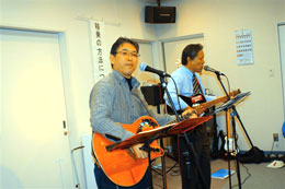 そして研修の終了後には”サプライズ”が・・・。日頃、介護で苦労されているヘルパーさんのリフレッシュになればと思い、社長と友人の鈴木さんで活動している「湘南バブルブラザーズ」によるスペシャルライブがプレゼントされた。