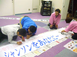 横断幕の作成に力がこもる。