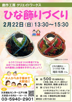 『創作工房クリエイトワークス~ひな飾りづくり~』のご案内