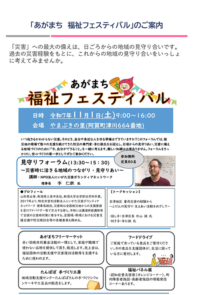だれもが生きがいをもち、安心していきいきと暮らすまちづくりをめざして、住民と一緒に“地域をむすび”、それが大きな輪になりますように!!