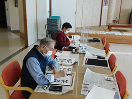 一年の初まりに書初め会を行いました。皆様、一文字一文字に思いを込め、真剣に書かれていました。