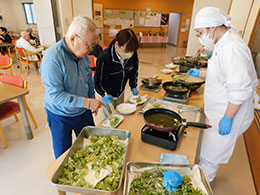 皆さんと楽しく作業を行い、収穫した野菜は食事に提供されます。