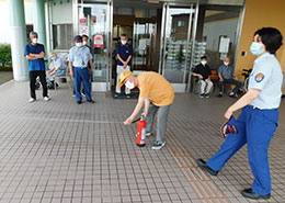 ケアハウスサンホームでは毎年6月と10月に消防避難訓練を行っております。今回は三条消防署員の方から訓練の様子を見ていただきました。