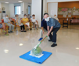 外の暑さに負けず、皆さん集まって楽しくスイカ割をしました。
