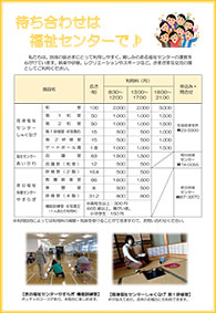 私たちは、地域の皆さまにとって利用しやすく、親しみのある福祉センターの運営を心がけています。娯楽や研修、レクリエーションやスポーツなど、さまざまな交流の場としてご利用ください。