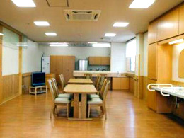同一施設内に、小規模多機能型居宅介護施設、通所施設および介護予防拠点施設を兼ね備えた複合型介護施設です。