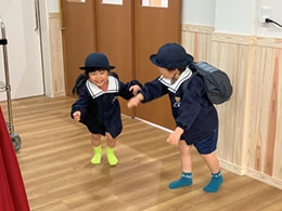 様々な素材に触れる体験を繰り返す中で、感触を味わったり違いを感じたりする体験を大切にしています。 全身を動かす遊びを通して、自分の体のバランスや力を使う感覚を育んでいってほしいと願っています。 |