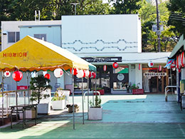 今年は事務所スペースを使い輪投げ、水槽コイン落とし、お玉すくいの3種類1つ50円でゲームを景品付きで行い、地域の子供たちやお子様連れの来場者との交流を深めました。催し会場でカラオケやビンゴ大会等が行われる夕刻を狙い、17:30開店予定が17:00前には子供たちの長蛇の列!! 天候も考慮し30分前倒しで開店しました。