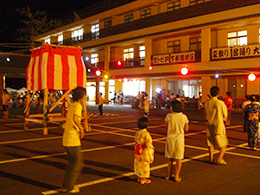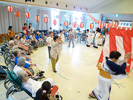 盆踊り(毎年8月) 地域の方々と一緒に、出店や盆踊りの雰囲気を味わい、楽しんでいただいています。 |