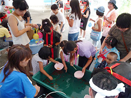 夏祭り(毎年8月) 施設の方々はもちろんのこと、地域の方々にも参加をしてもらい、出店や盆踊りなどで夏祭りの雰囲気を味わい楽しんでいただいています。 |