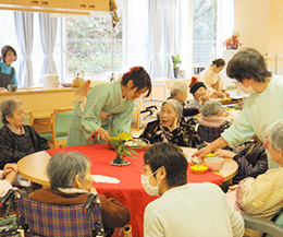 食事イベント(随時) 夏には「流しそうめん」、冬には「鍋料理」など季節感を味わえる食事を利用者の方々に楽しんでいただいています。 |