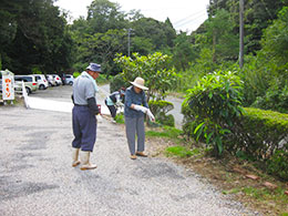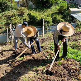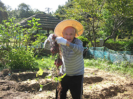 農園の方の説明を聞き、肥料などの質問をされる場面もありました。