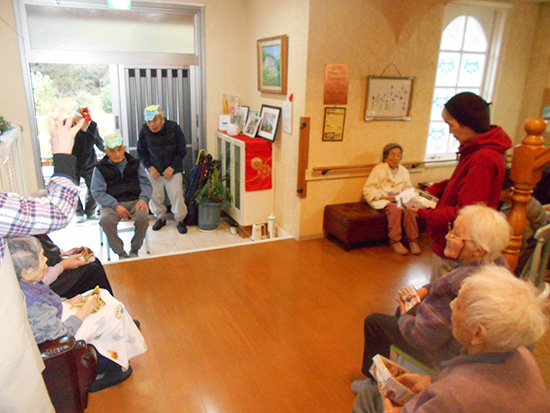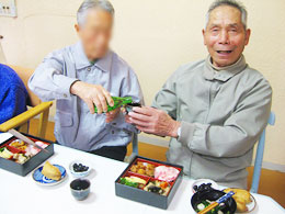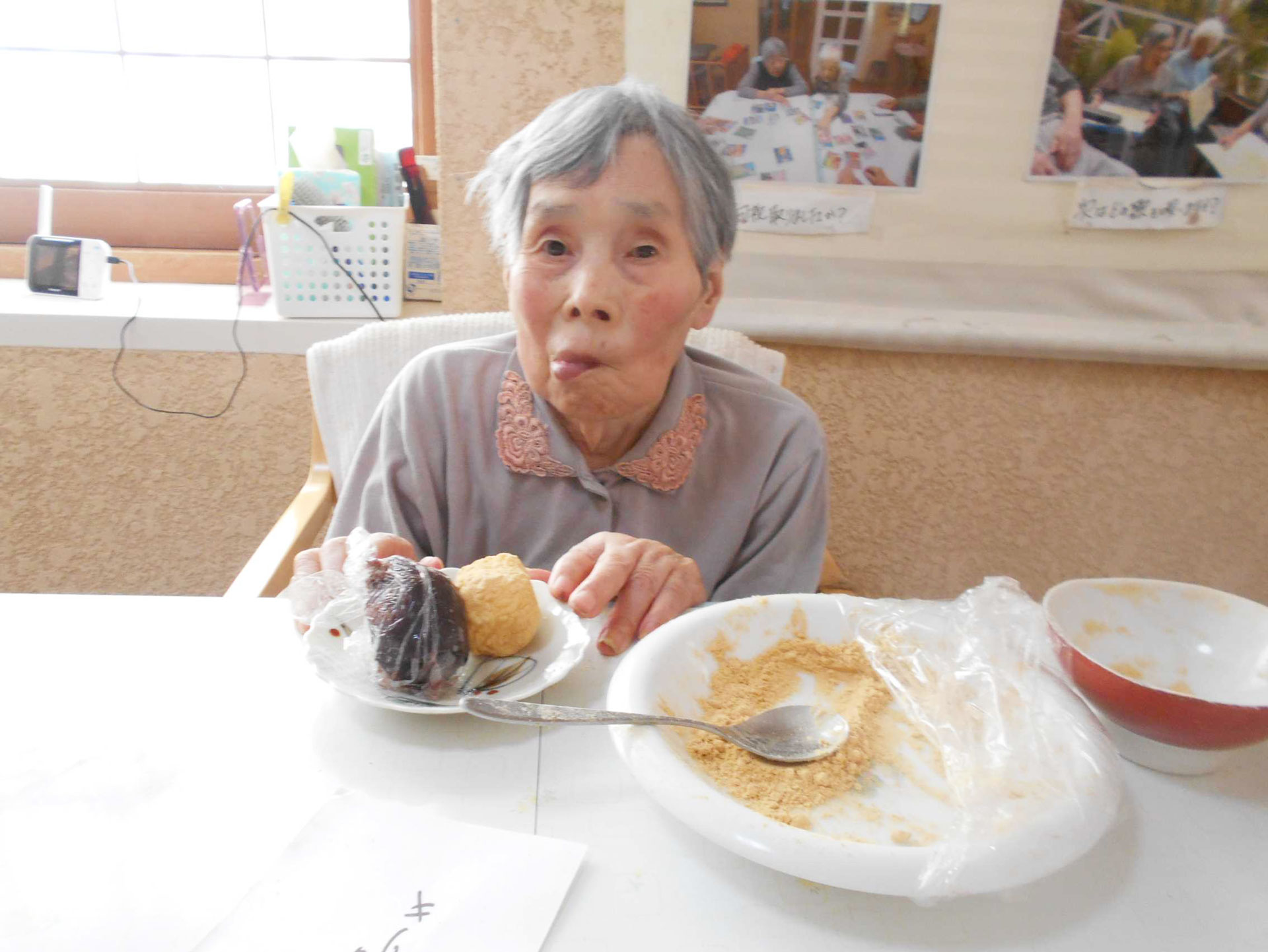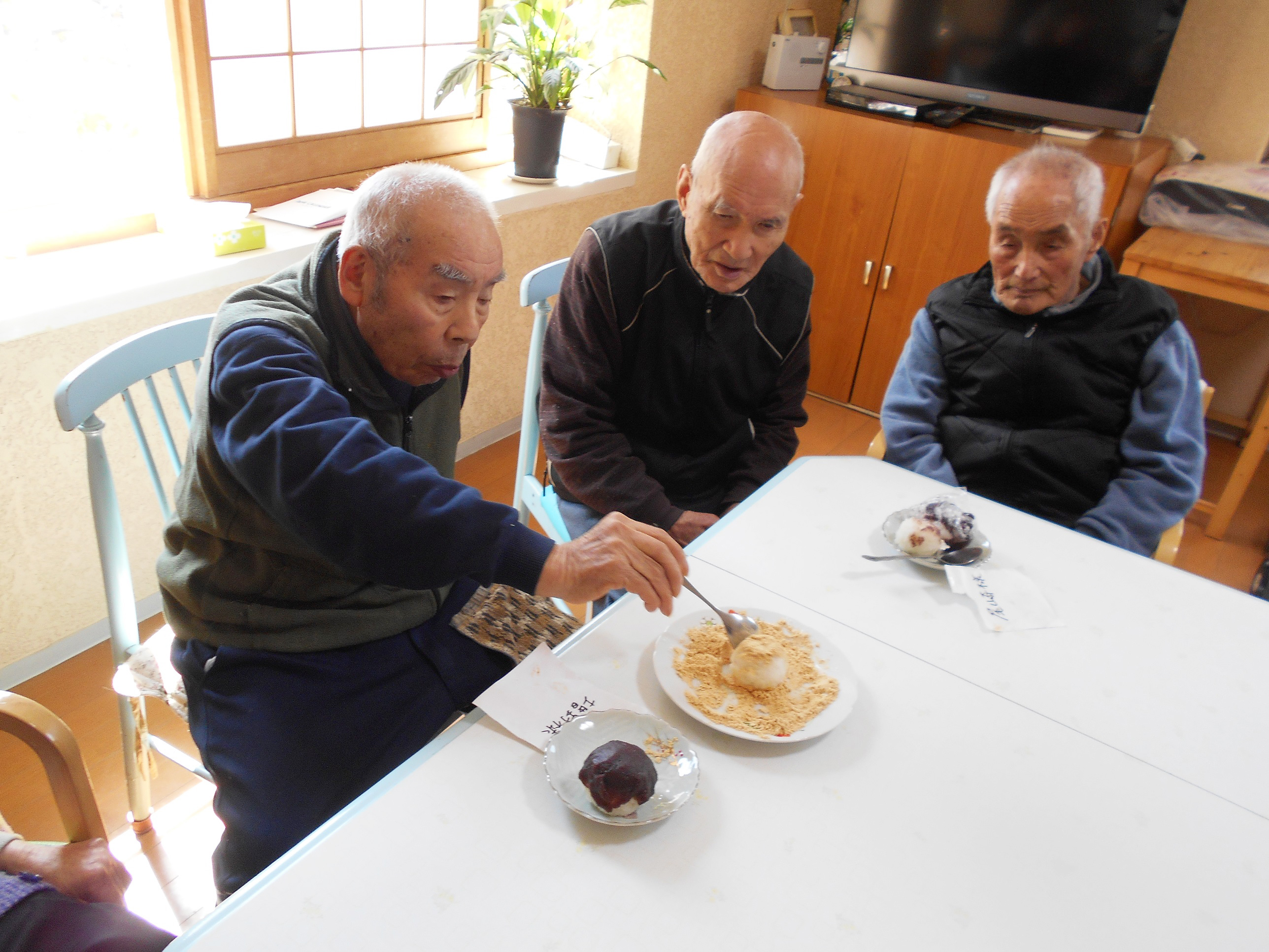 昼食時にご自分で作ったおはぎを頂き皆様喜ばれていました。