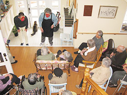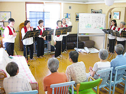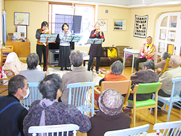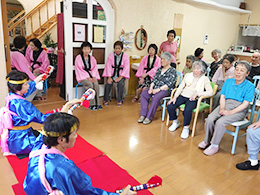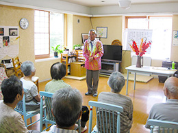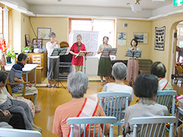 6/26ボランティアの方が来られ、懐かしい曲を演奏されました。曲に合わせて一緒歌い楽しい時間を過ごしました。